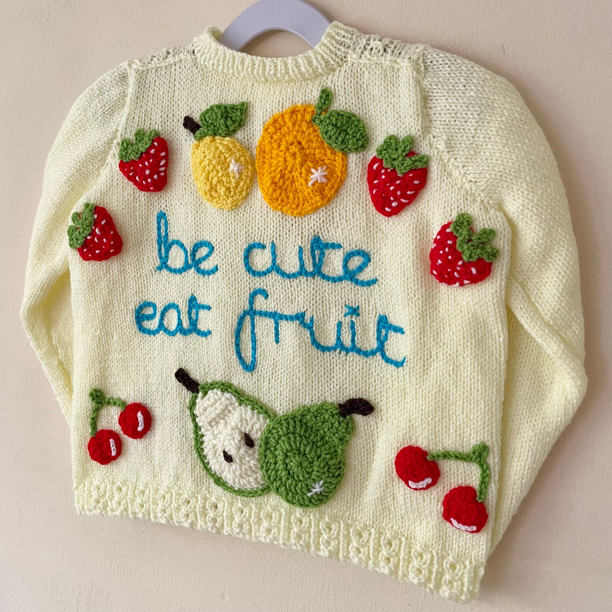 "Be Cute Eat Fruit” Handmade Cardigan Size Approx 3-5 Years