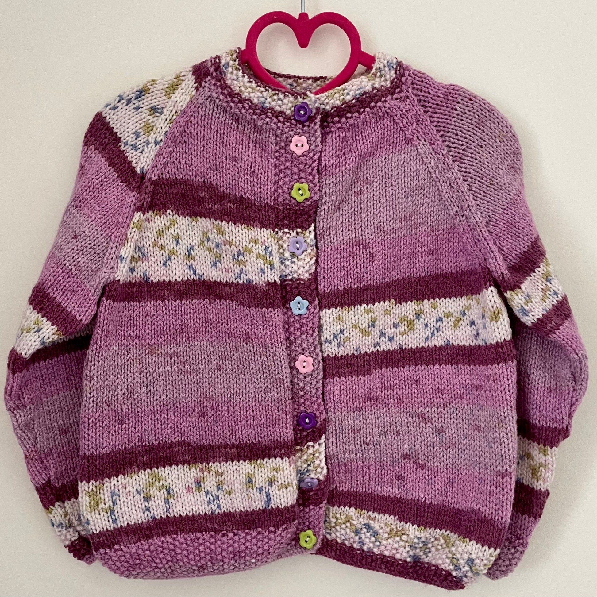 Bee Happy cardigan size approximately 2-3 years (see measurements below).