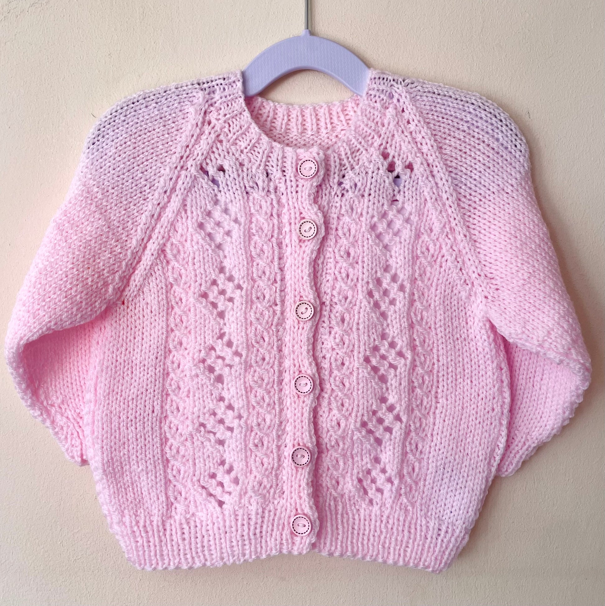 Believe cardigan size approximately 2-3 years (see measurements below).