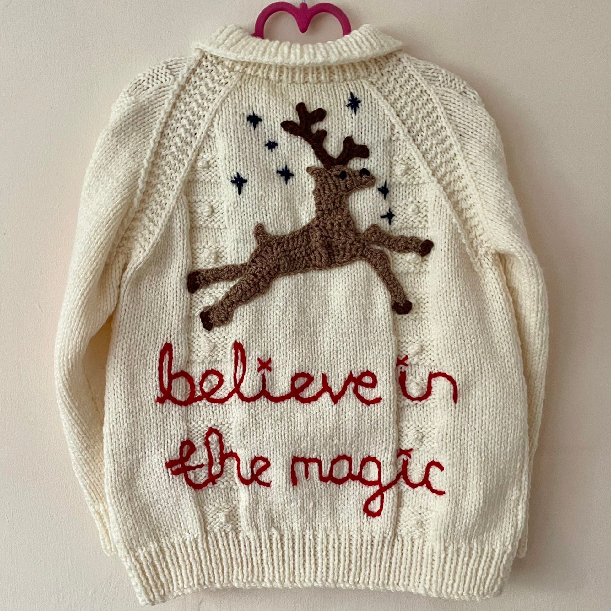 “Believe In The Magic” Christmas Handmade Cardigan Size Approx 5-7 Years