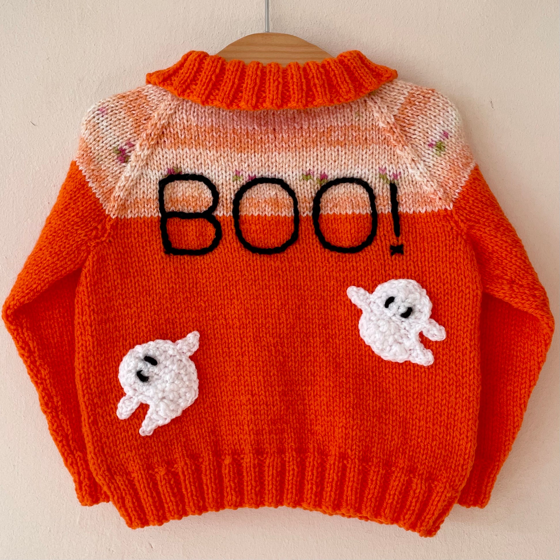 "BOO!” Handmade Orange Cardigan Size Approx 6-12 months