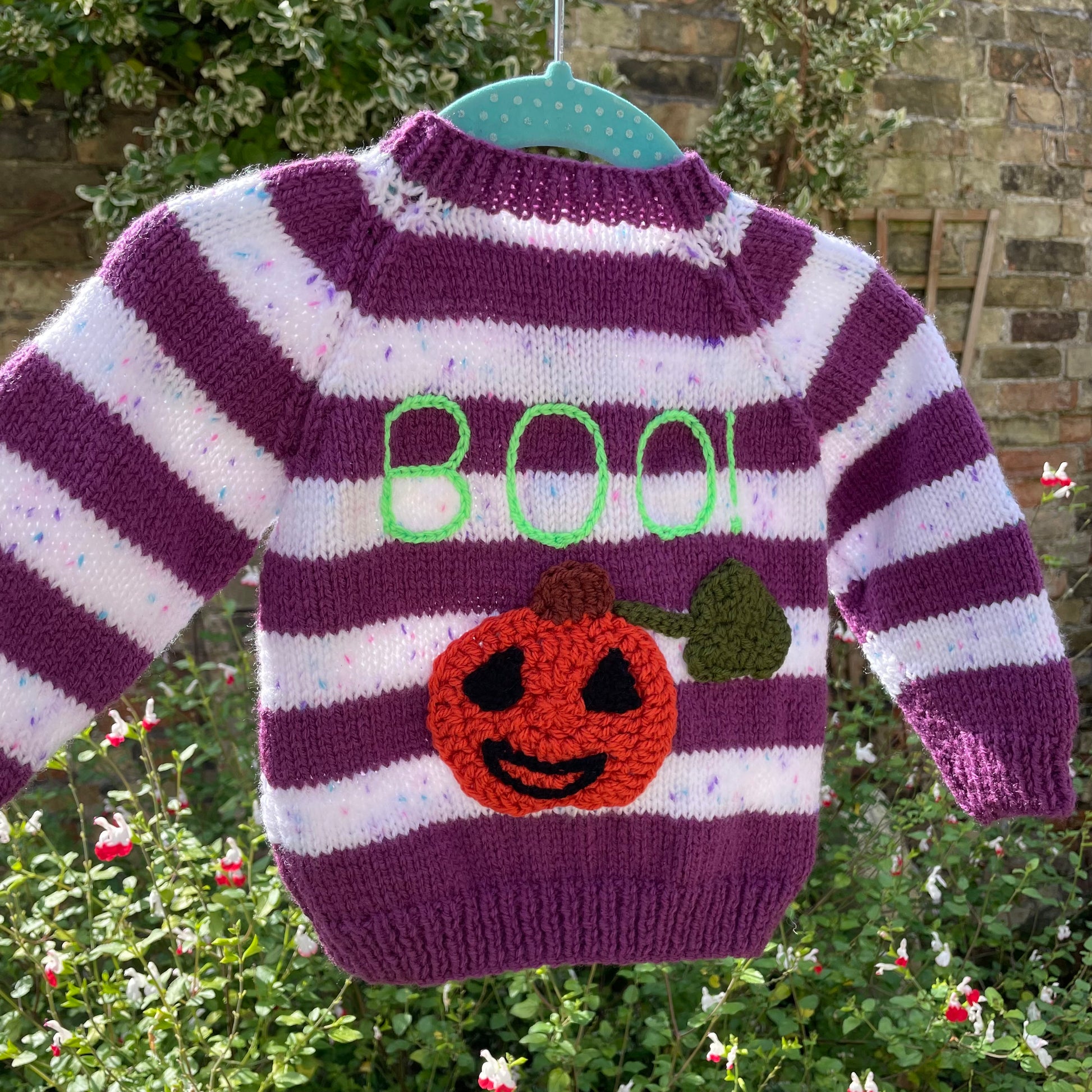 "BOO!” Handmade Striped Cardigan Size Approx 0-6 Months