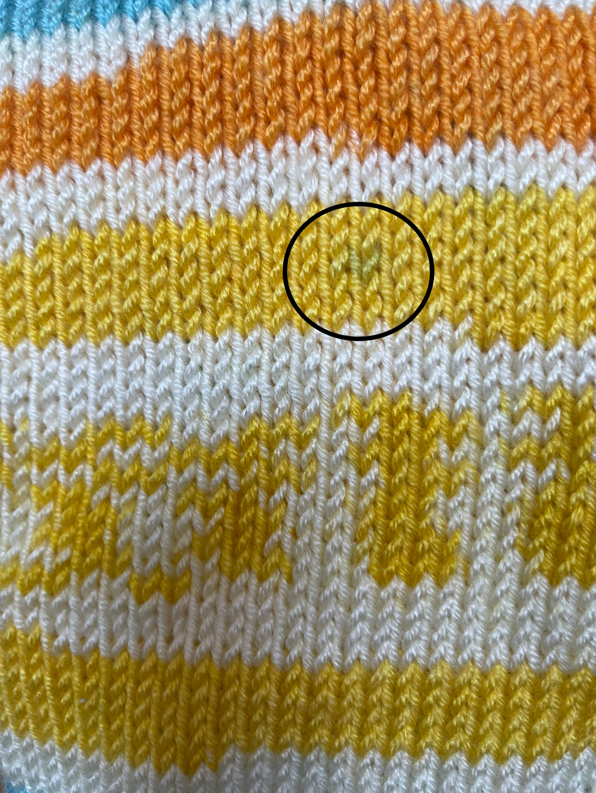 Please note this knit is made from a ball of cotton that changes colour - there are a couple of blue stitches among the yellow from the dyeing process, but it does not detract from the overall appearance of the knit. Please see additional photo before buying.