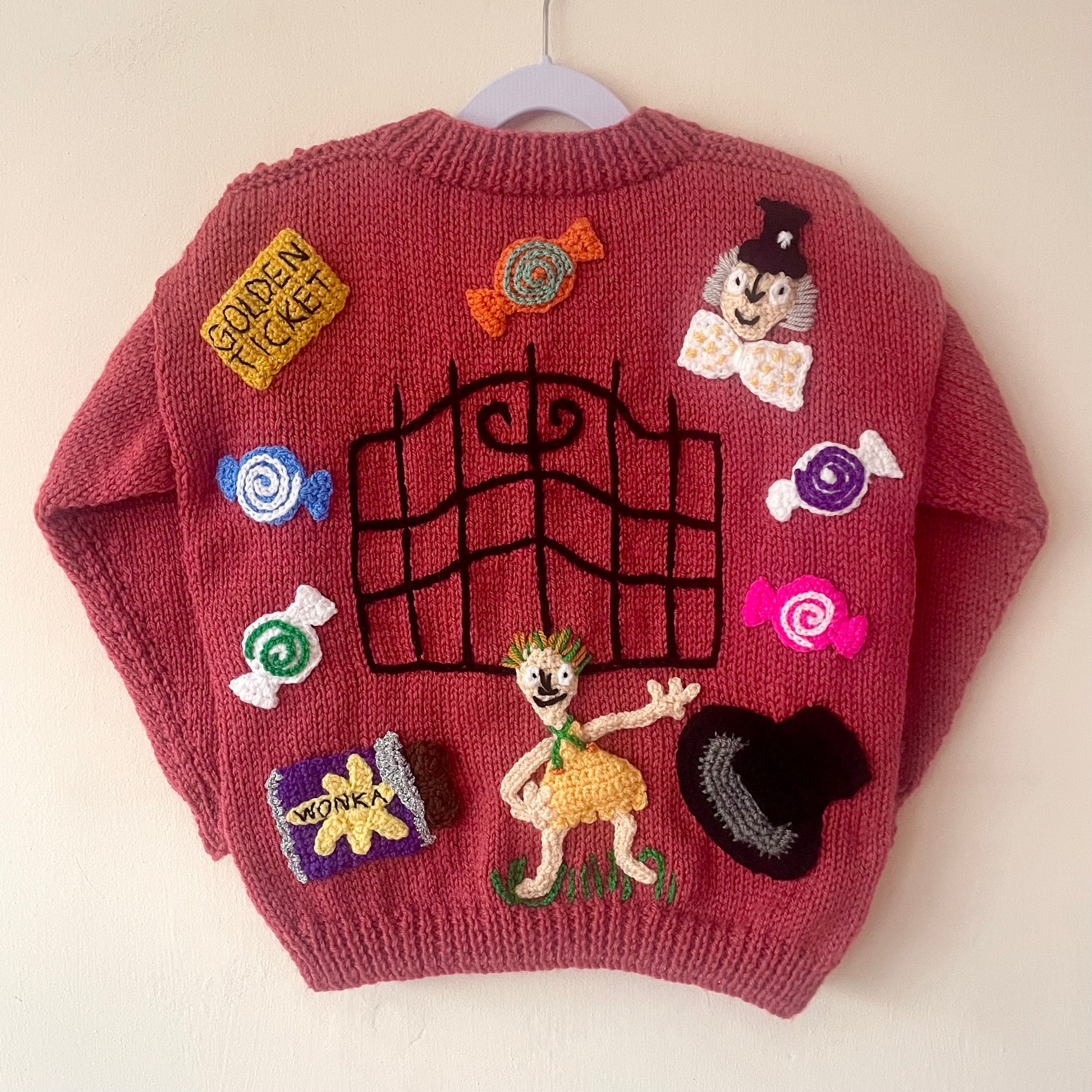 "Charlie and the Chocolate Factory" Handmade Cardigan Size Approx 6-8 Years