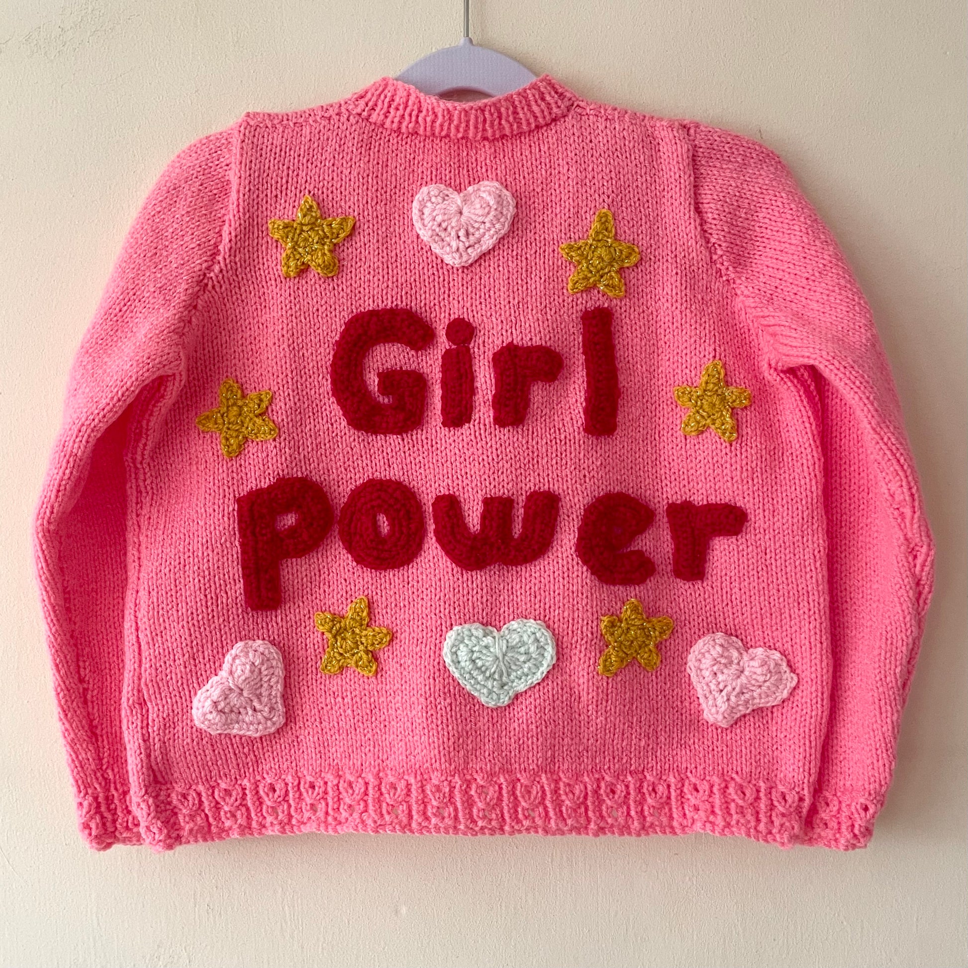 "Girl Power” Handmade Cardigan Size Approx 4-6 Years