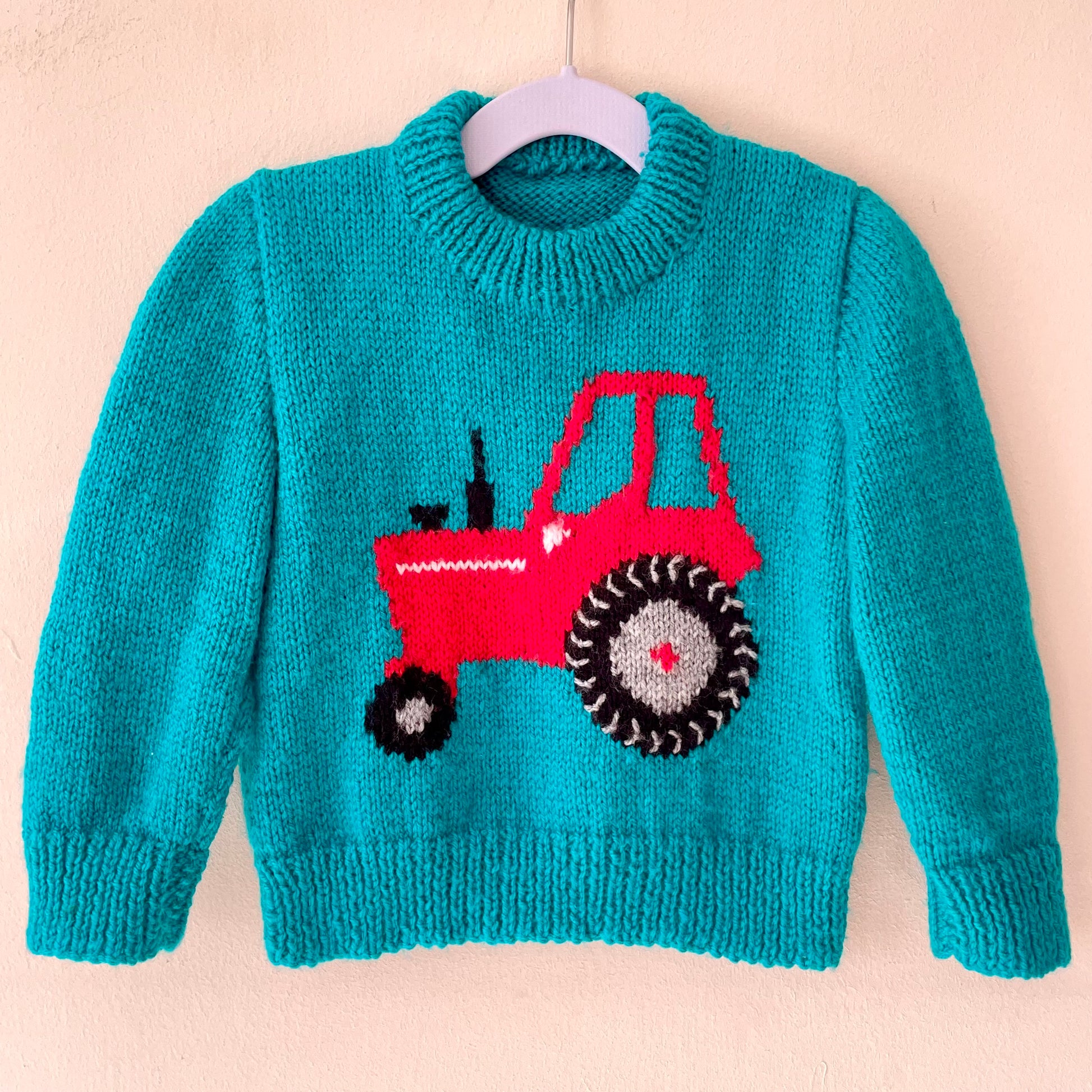 Handknitted Tractor Jumper Size Approx 1.5-2.5 Years