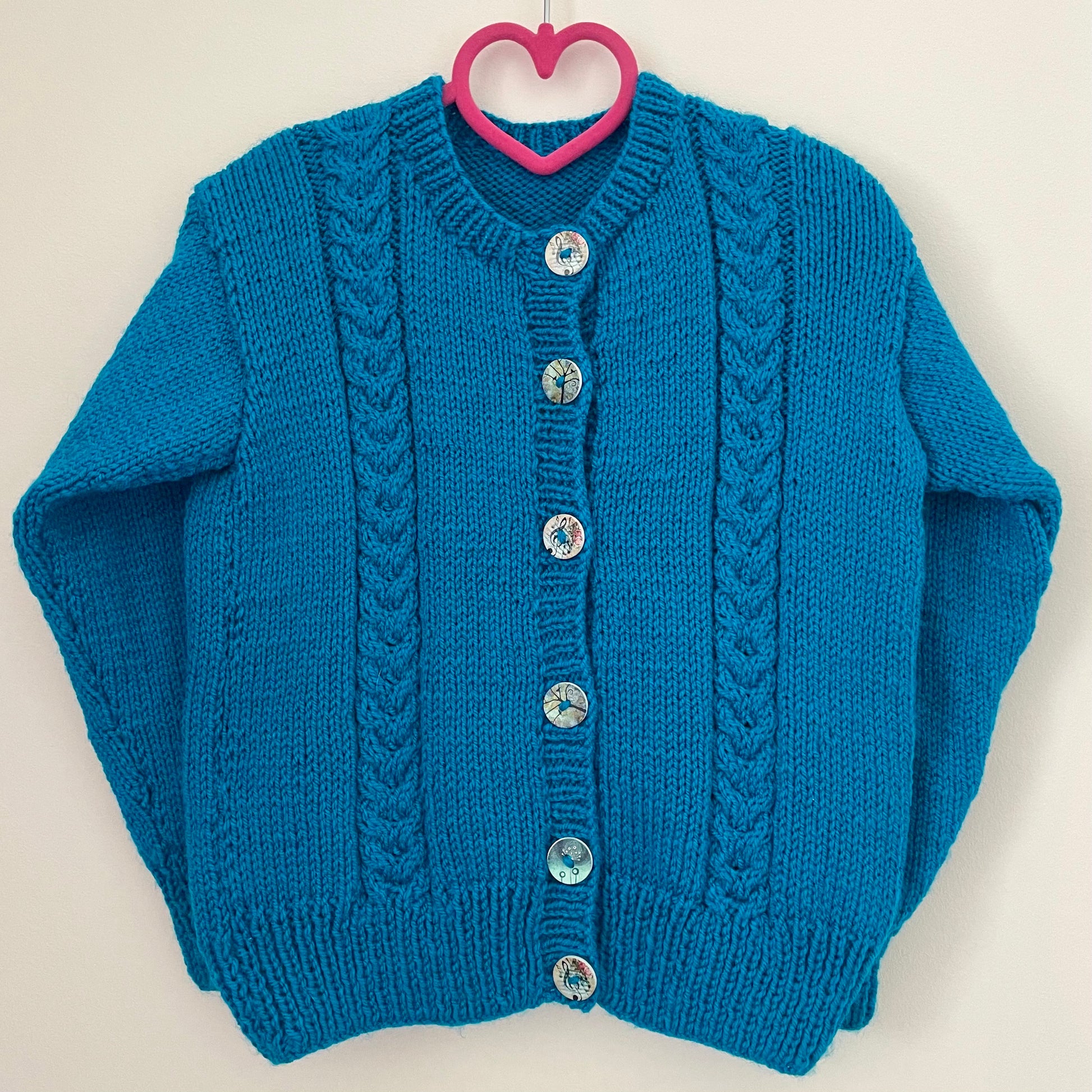 Happy Days cardigan size approximately 3-4 years (see measurements below).