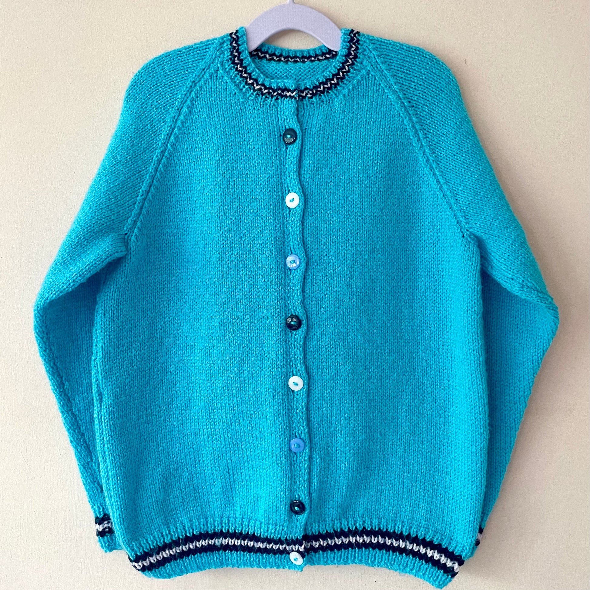 "Ice Cream Club” Handmade Blue Cardigan Size Approx 7-9 Years