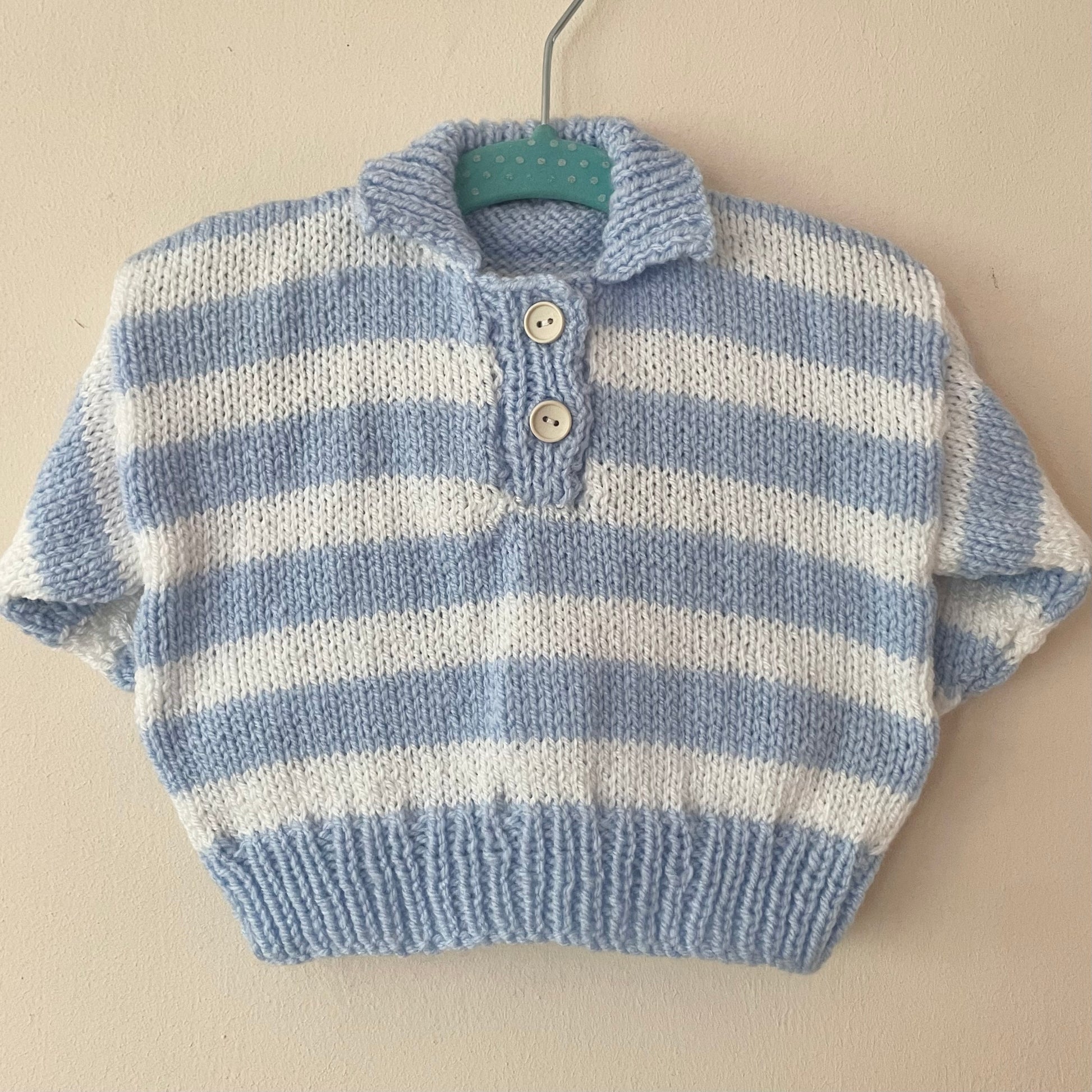 Although we suggest an age range that each knit would be suitable for, we also detail chest, length and sleeve measurements in inches for each product listed for sale in our shop.