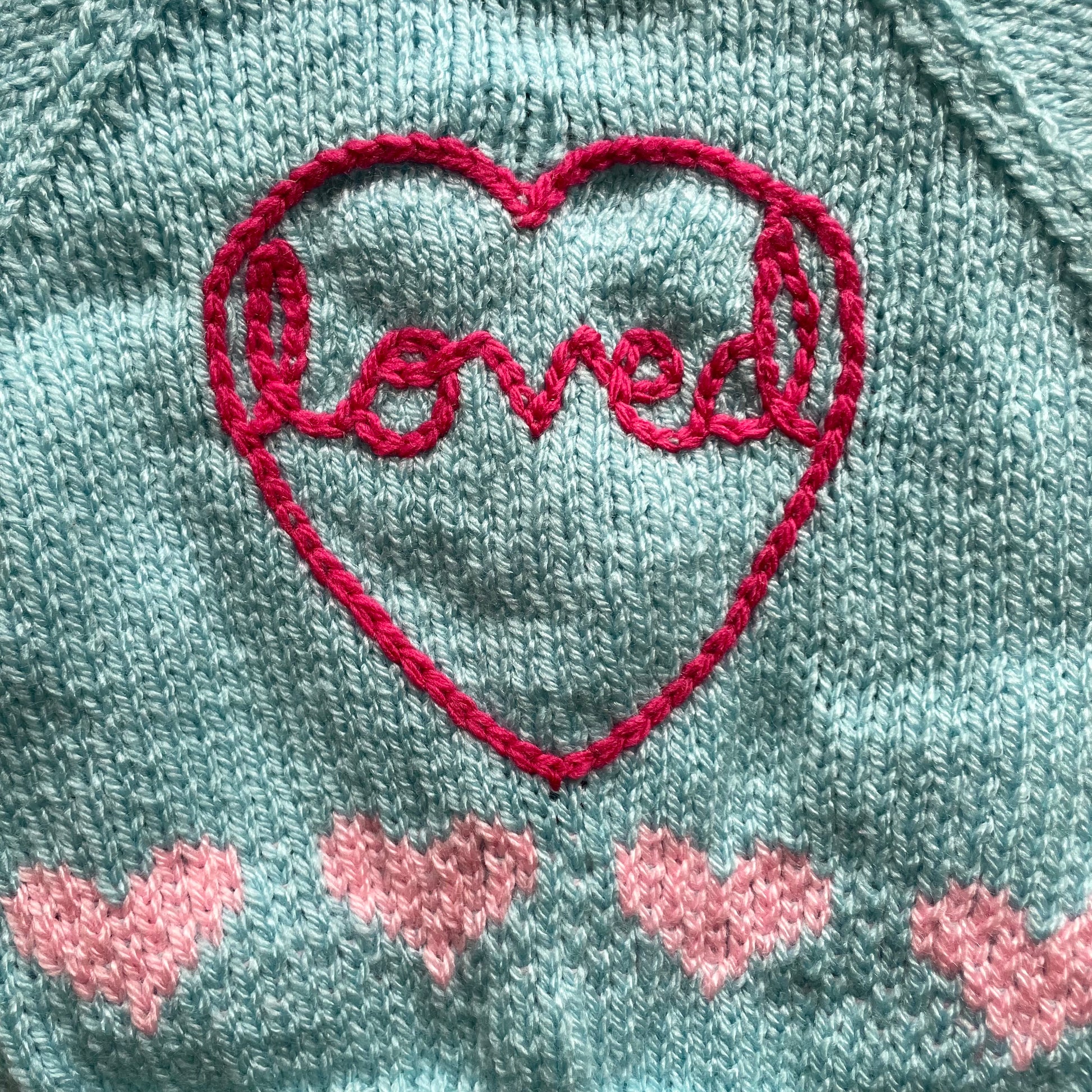 “Loved” Heart Handmade Cardigan Size Approx 0-6 months