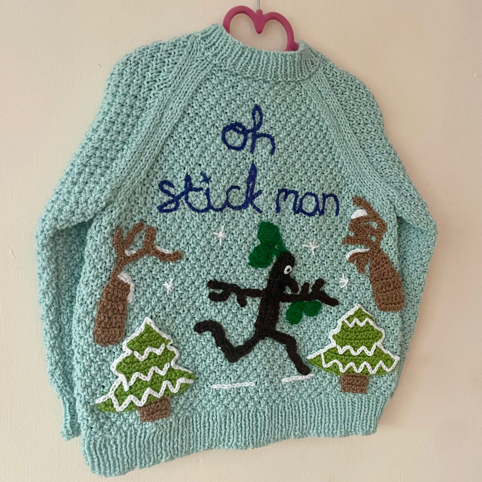 "Oh Stickman" Blue Handmade Cardigan Size Approx 4-5 Years