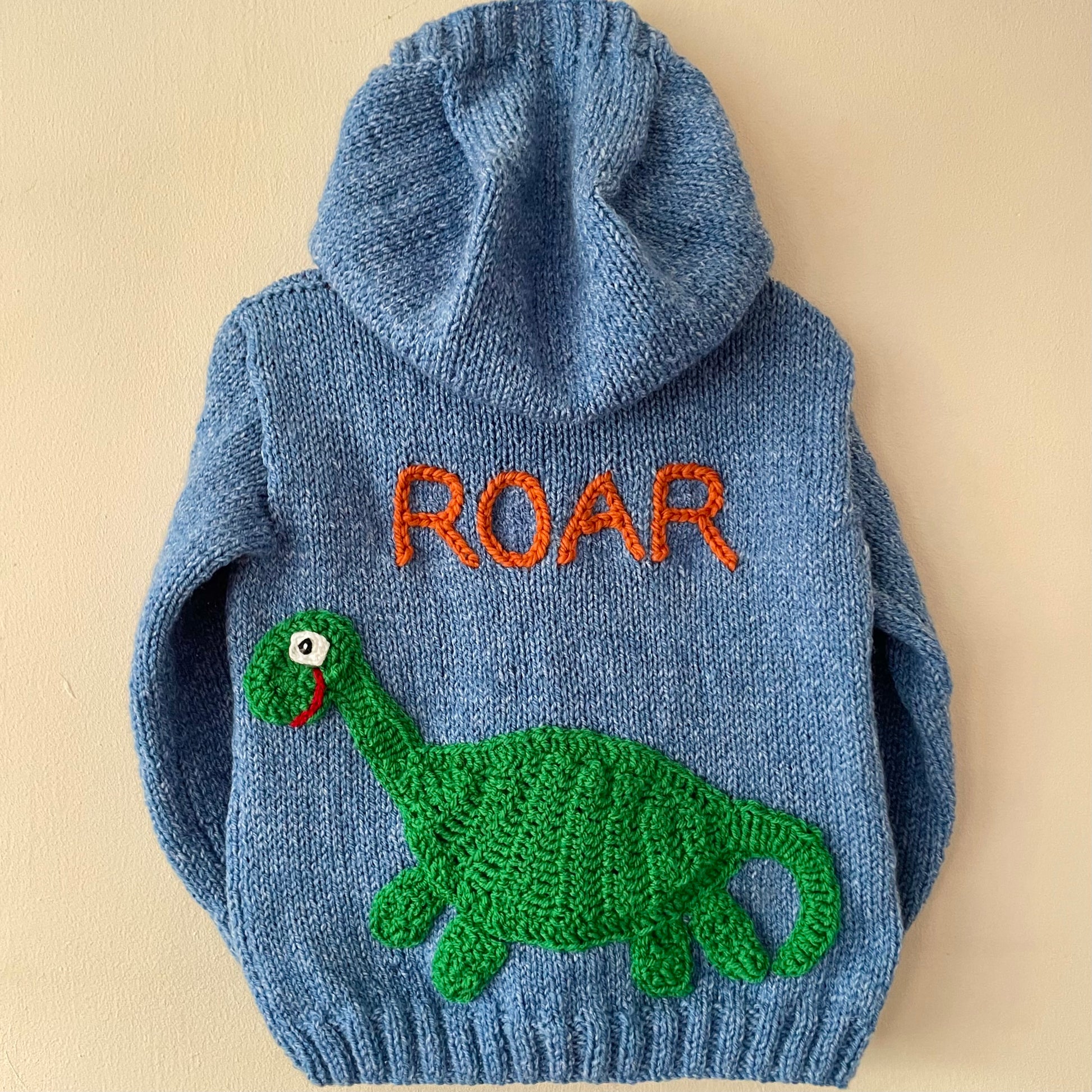 “ROAR” Handmade Hooded Cardigan Size Approx 3-5 Years