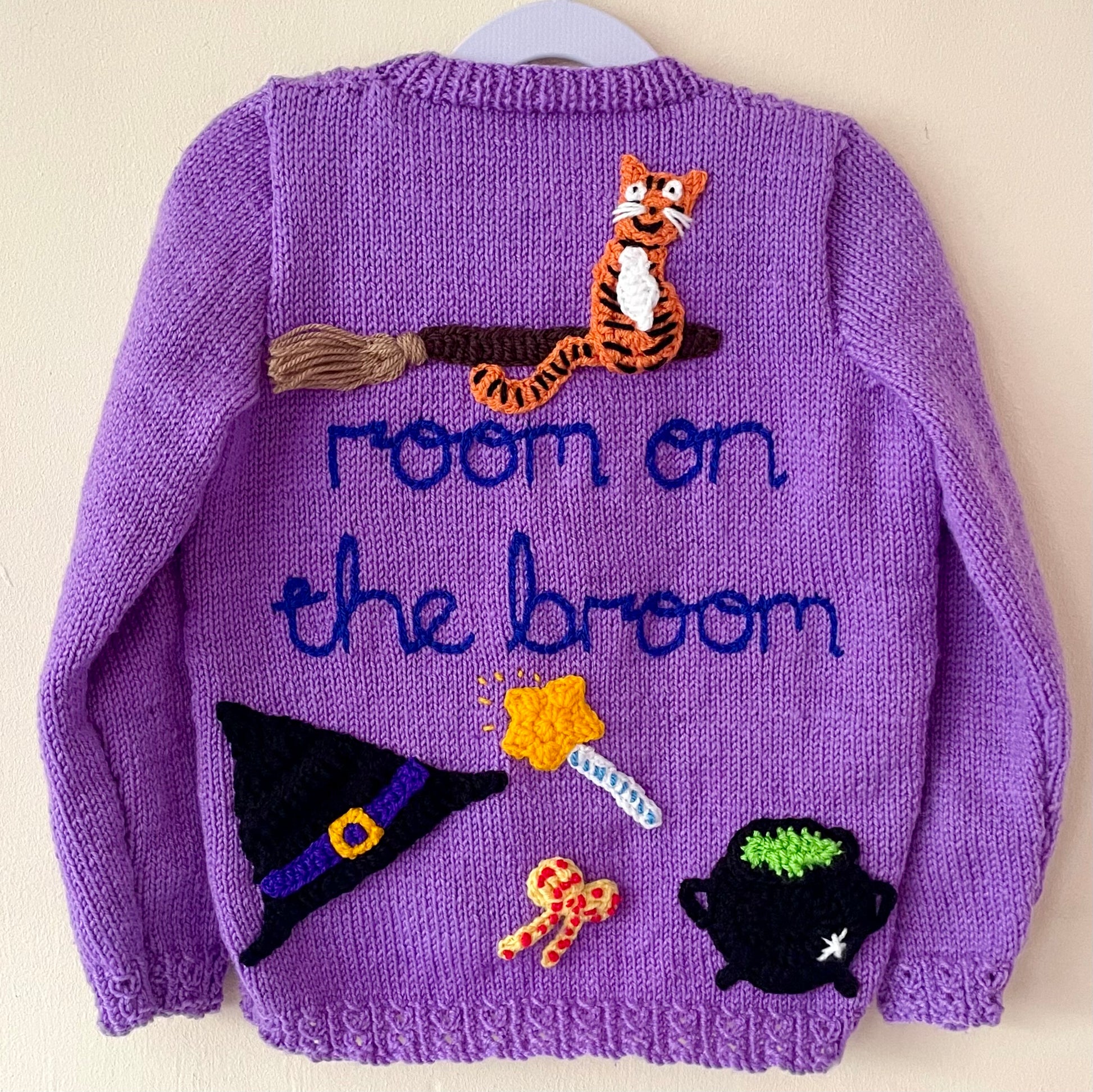 "Room On The Broom” Handmade Cardigan Size Approx 3-5 Years