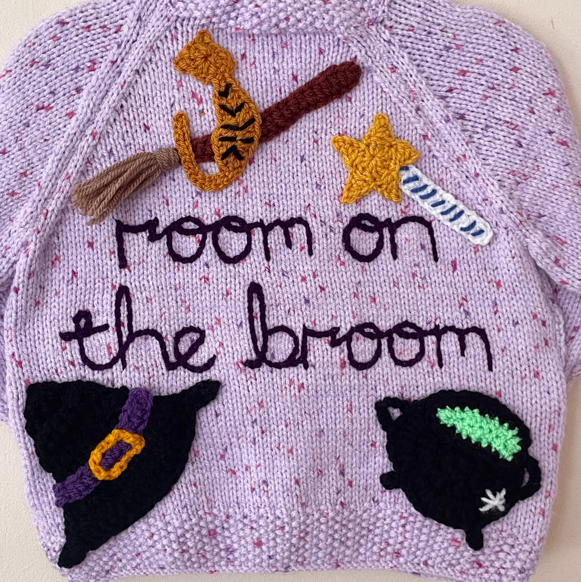 "Room On The Broom” Handmade Lilac Cardigan Size Approx 2-3 Years