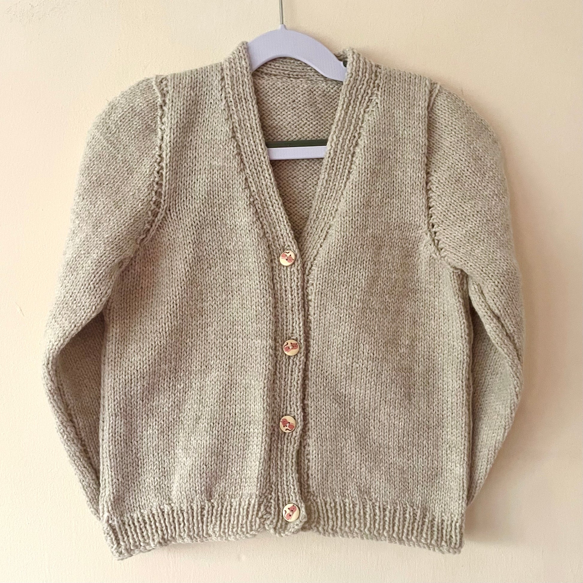 Although we suggest an age range that each knit would be suitable for, we also detail chest, length and sleeve measurements in inches for each product listed for sale in our shop.