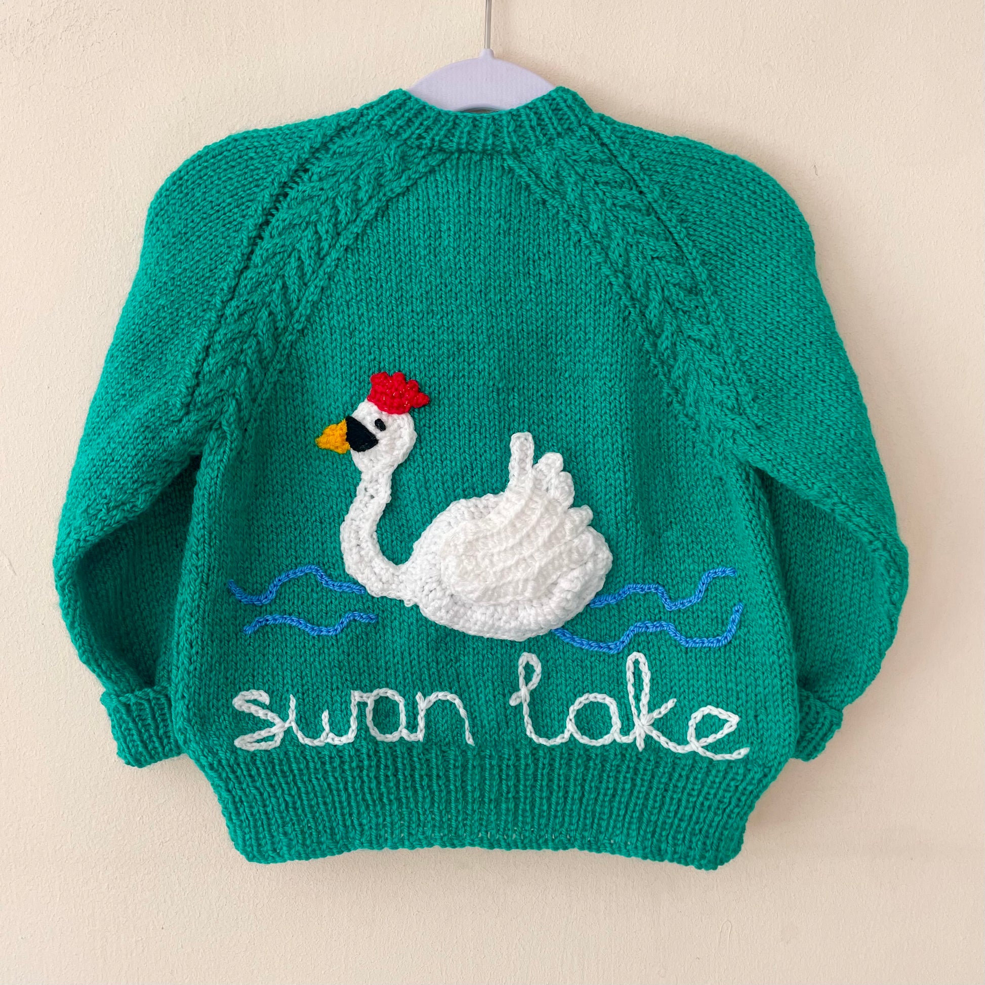 "Swan Lake” Handmade Green Cardigan Size Approx 2-3 Years