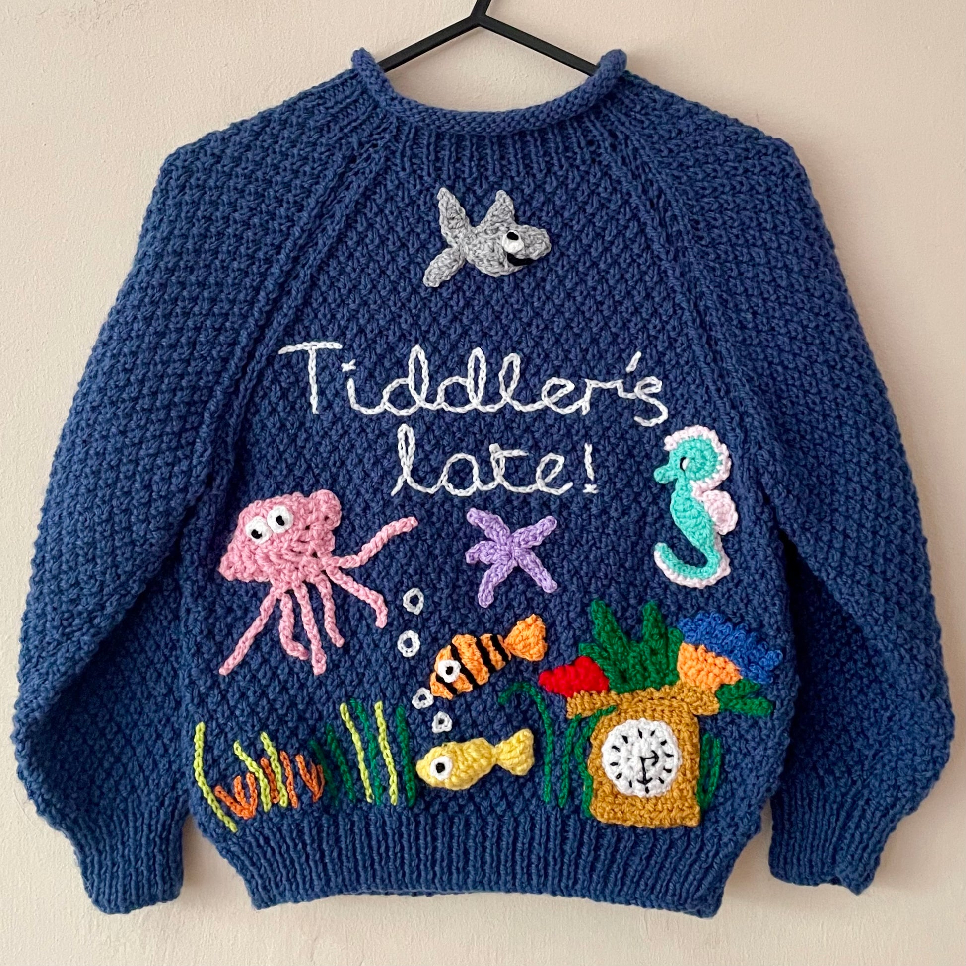 "Tiddler's Late!" Handmade Jumper Size Approx 4-6 Years