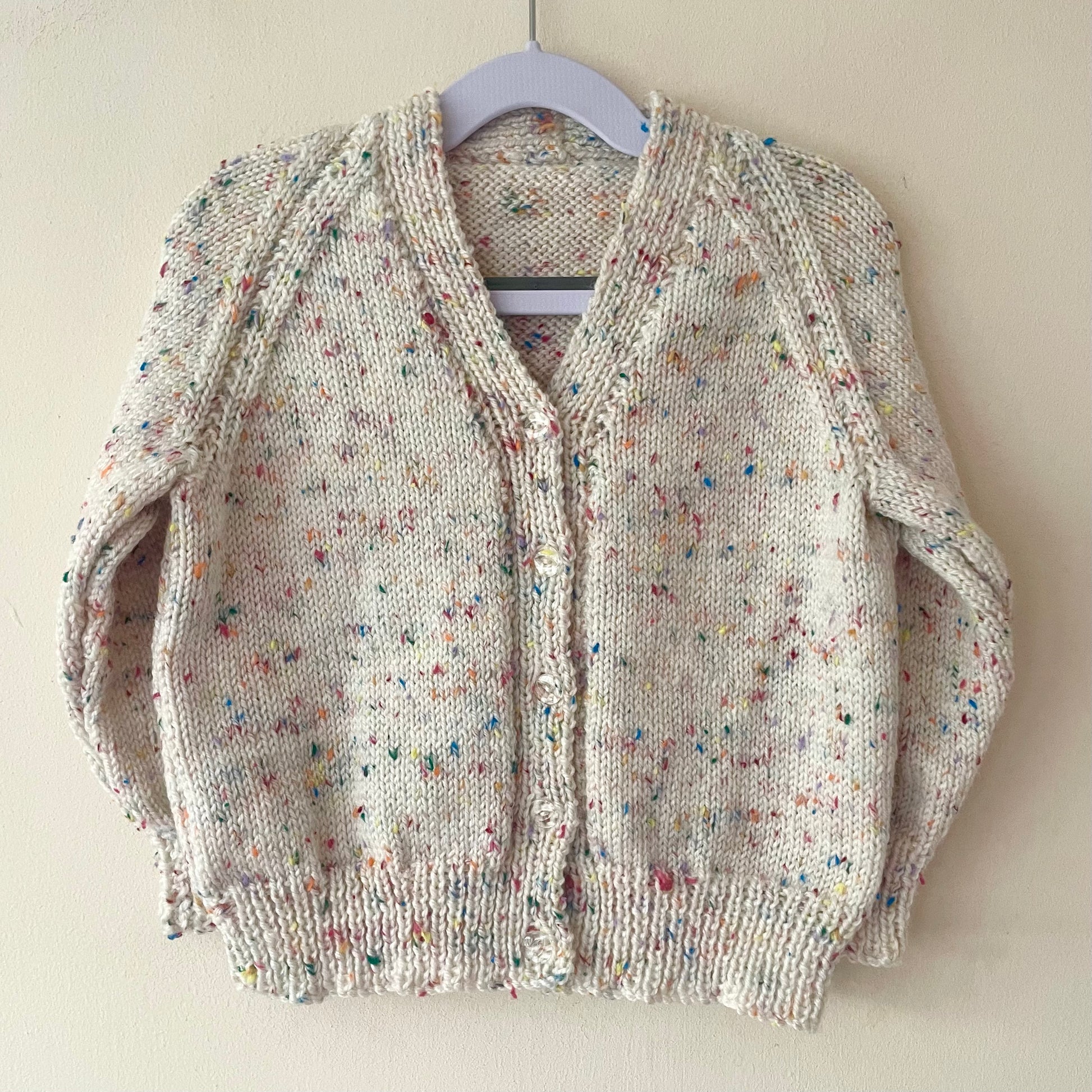 Although we suggest an age range that each knit would be suitable for, we also detail chest, length and sleeve measurements in inches for each product listed for sale in our shop.