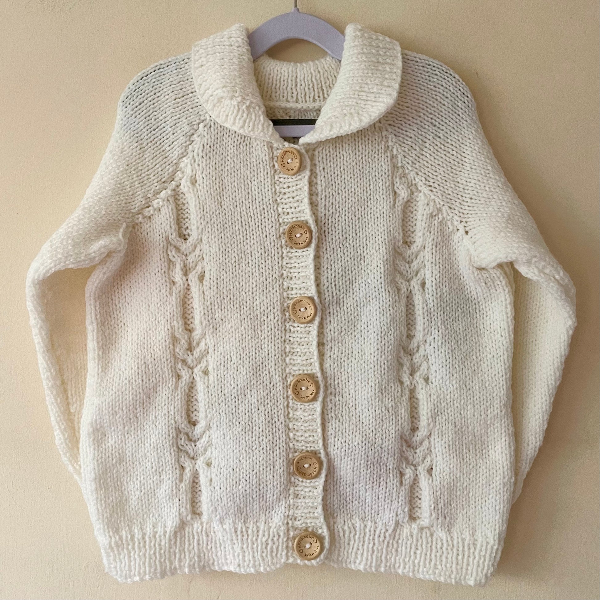 Although we suggest an age range that each knit would be suitable for, we also detail chest, length and sleeve measurements in inches for each product listed for sale in our shop.