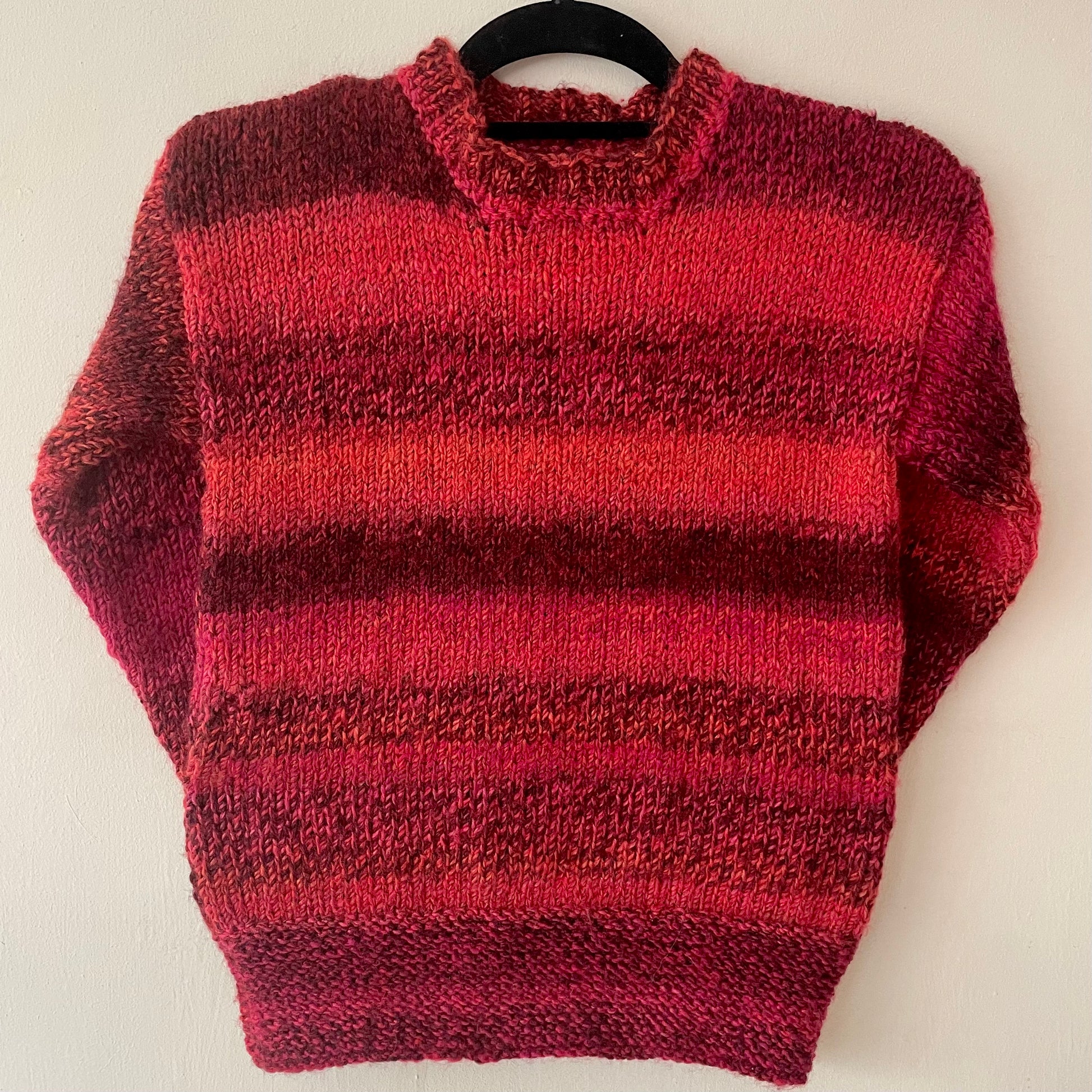 Although we suggest an age range that each knit would be suitable for, we also detail chest, length and sleeve measurements in inches for each product listed for sale in our shop.