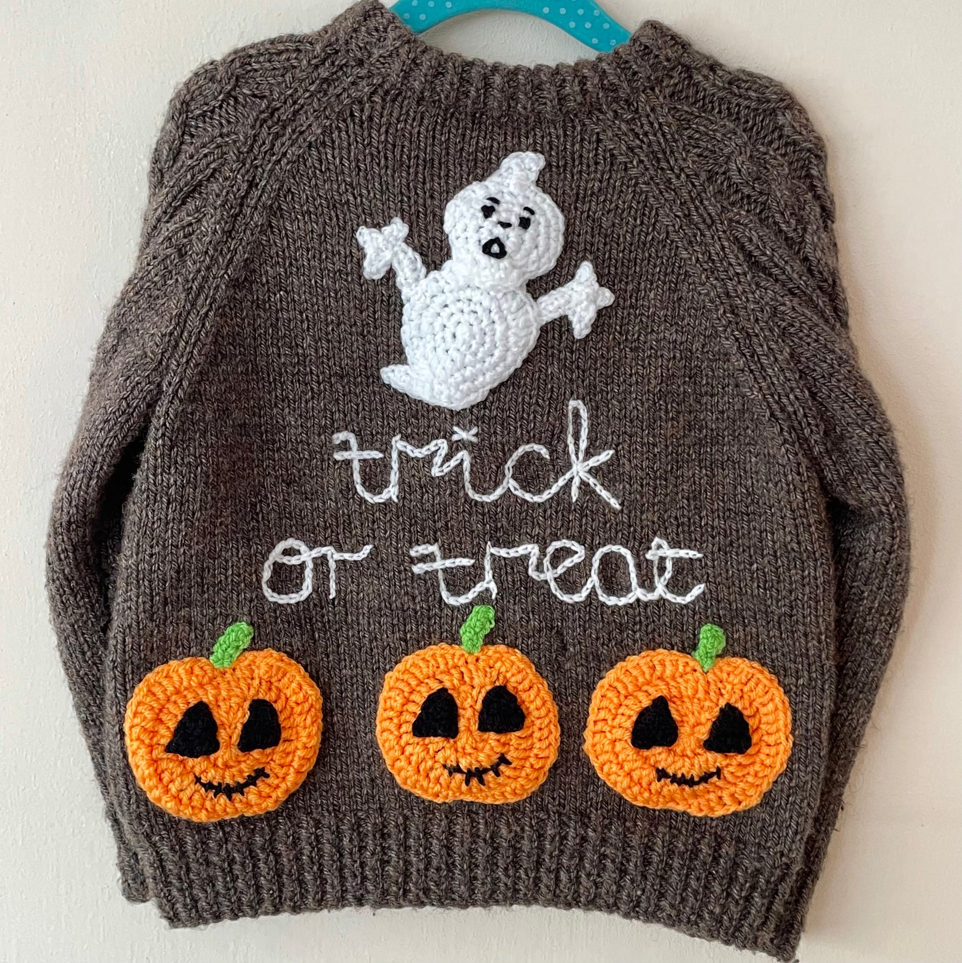 Trick or Treat handmade jumper size approximately 3-4 years (see measurements below).